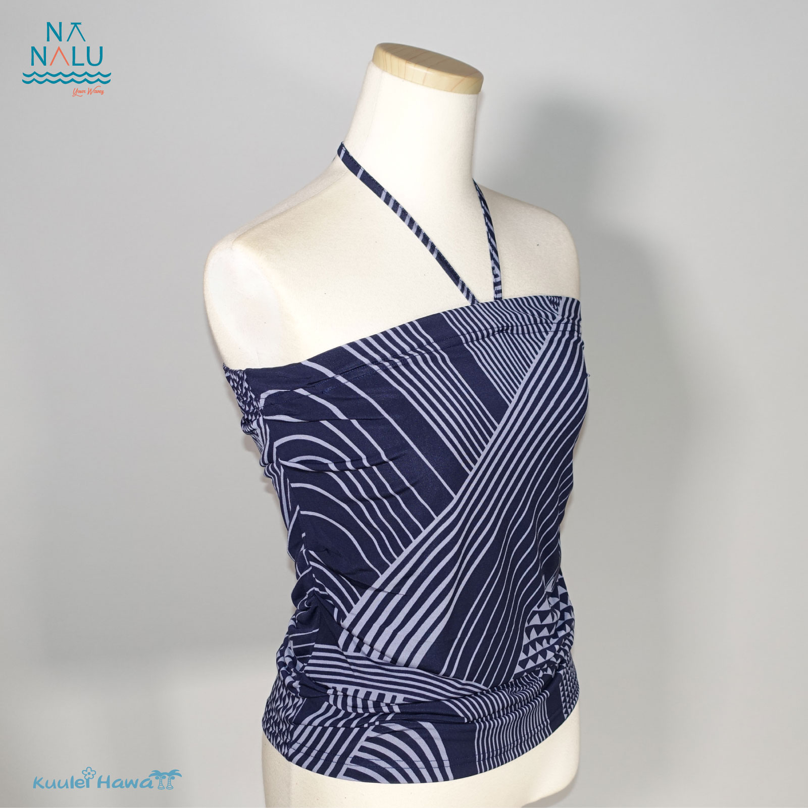 ブラウジングベアトップ 紺×グレー