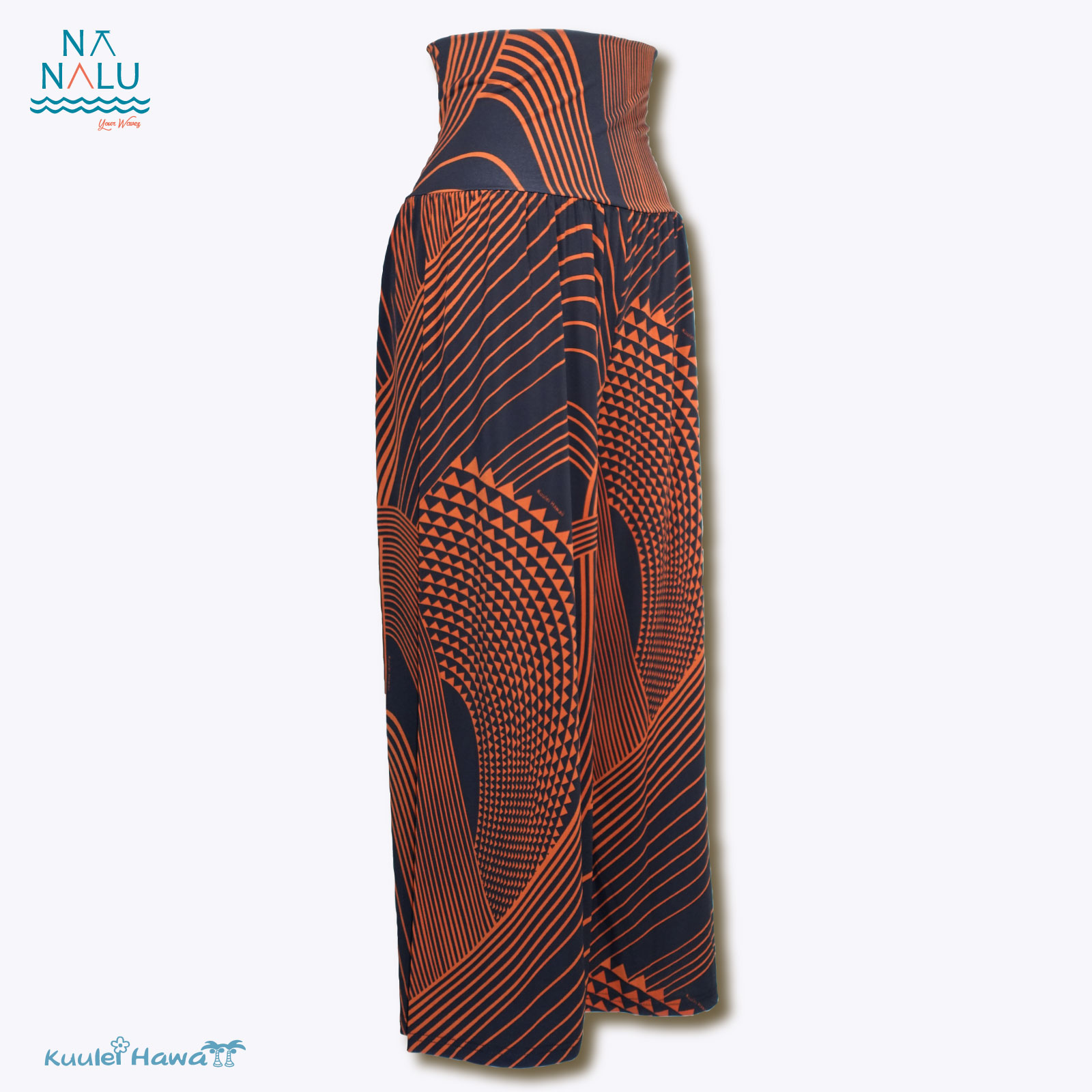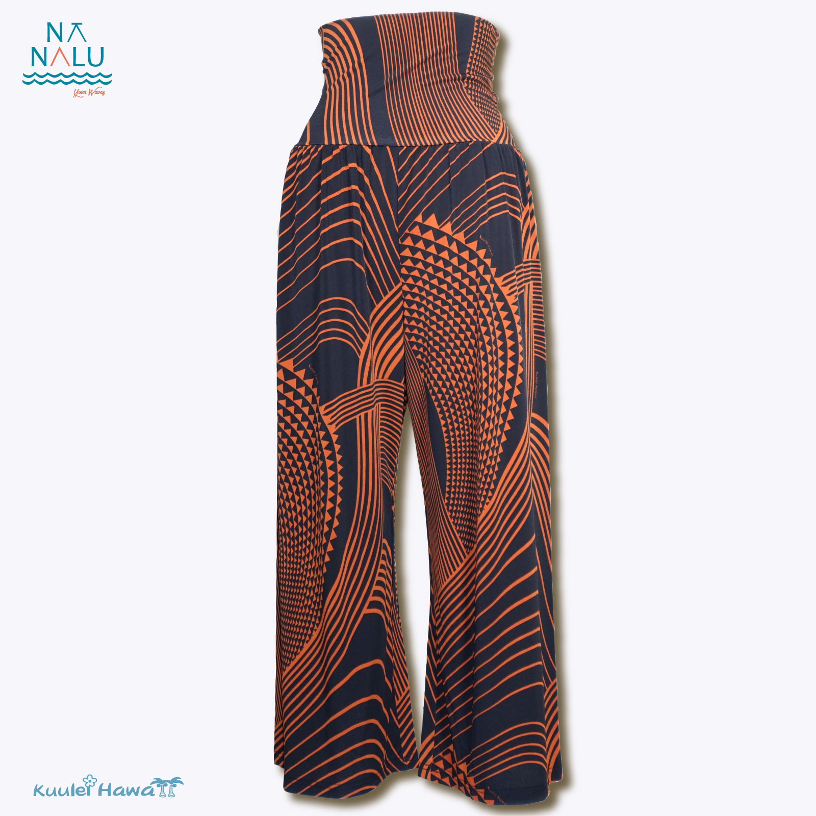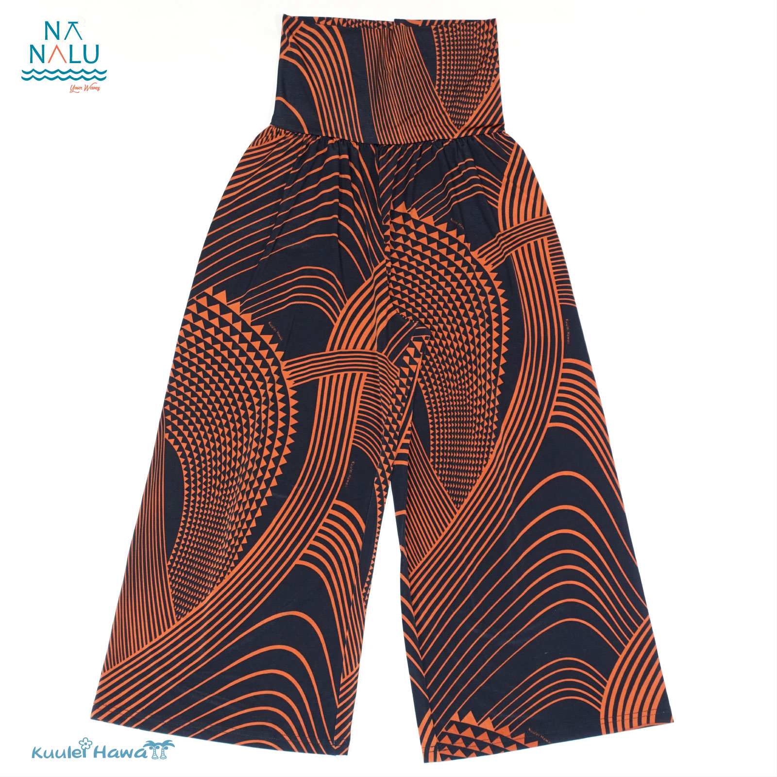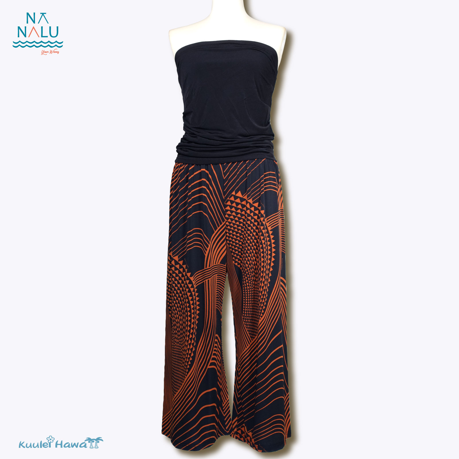 ウエストベルトを広めにとり、たっぷりとしたボリュームのあるパンツです。このベルト部の調節で、長め、短めの調節がしやすくなっています。