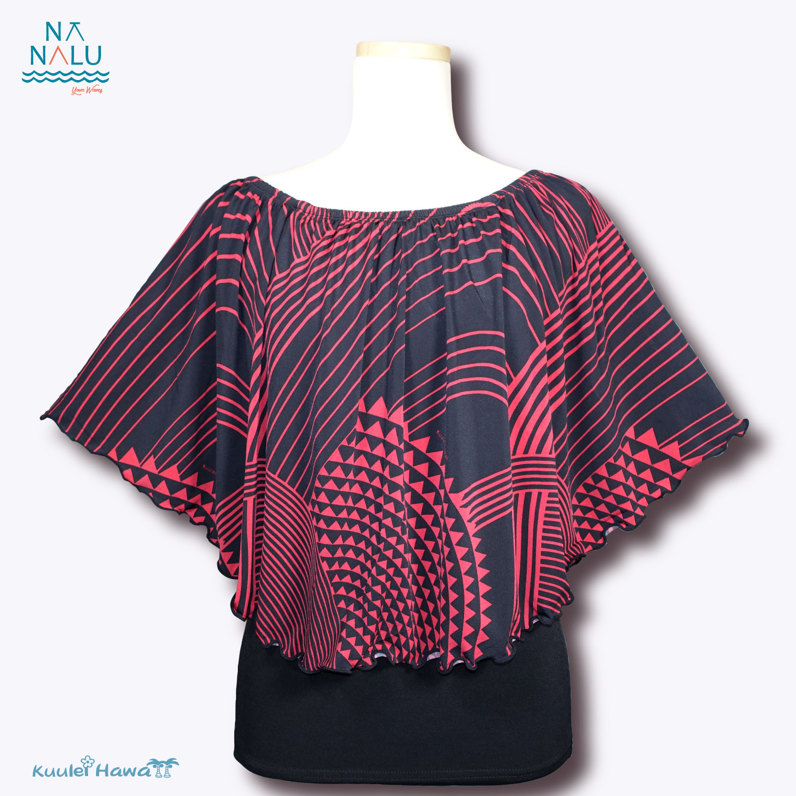 ボレロ風の襟には柄物の素材を、身頃は黒の無地を使ったタイプのブラウスです。総柄のものより身頃部分が長めになっているので、ブラウジングするなど着こなしの幅が広がります。