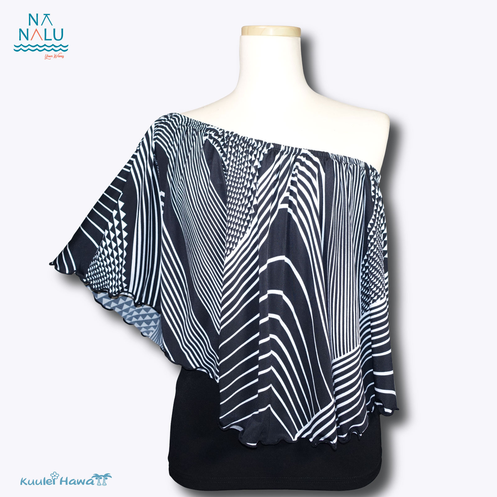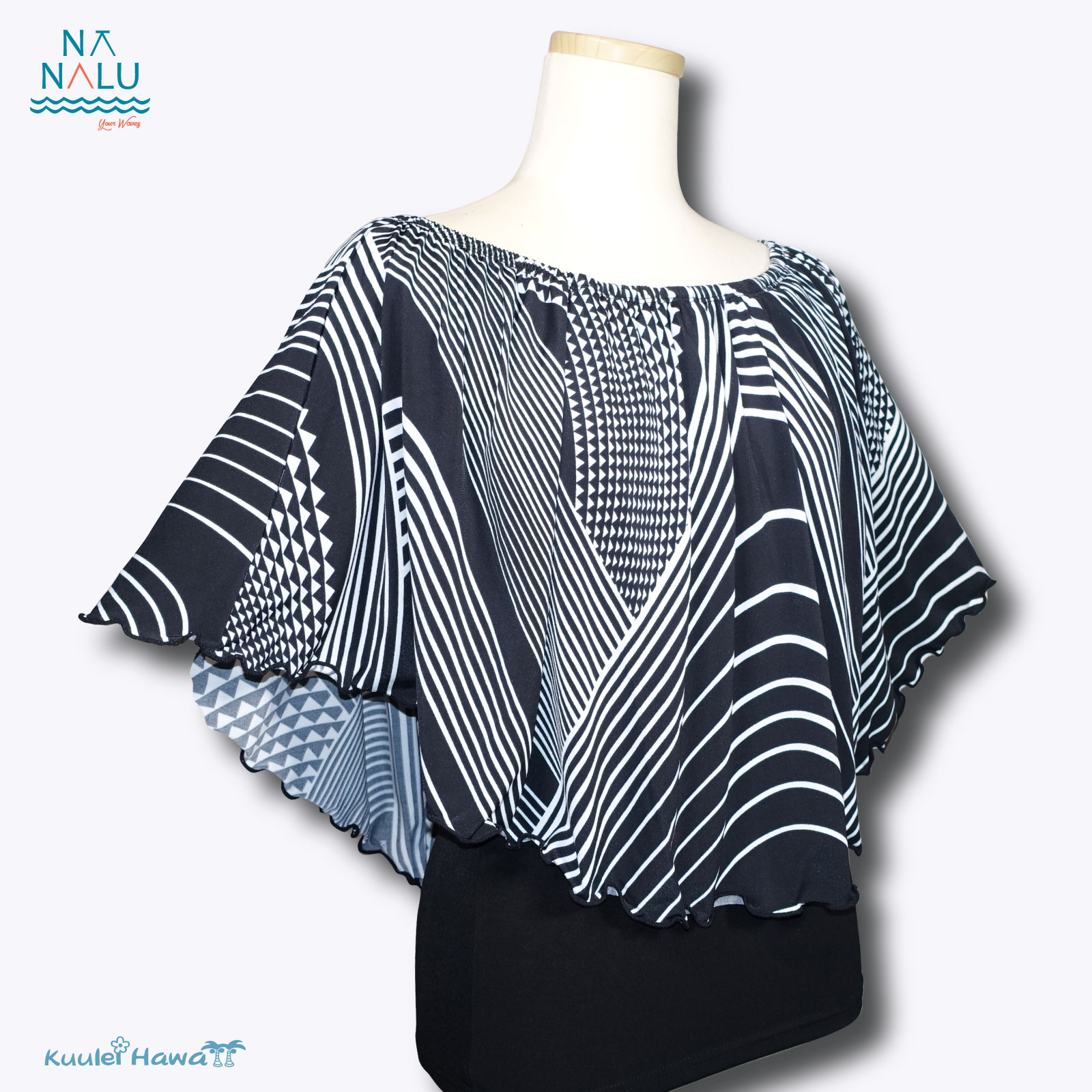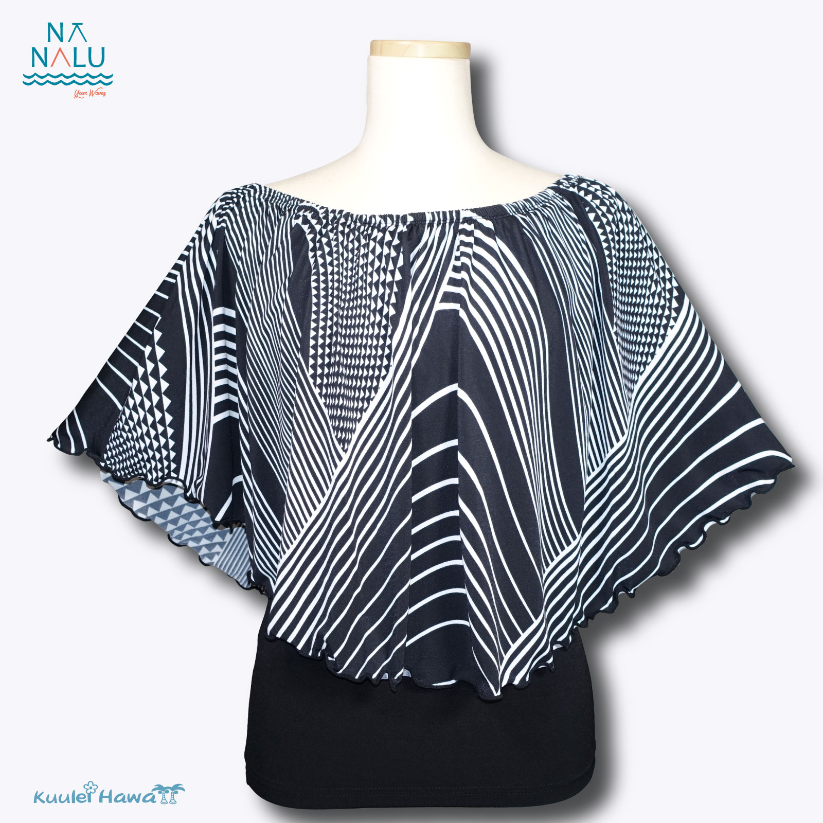 4WAYブラウス・黒×黒白