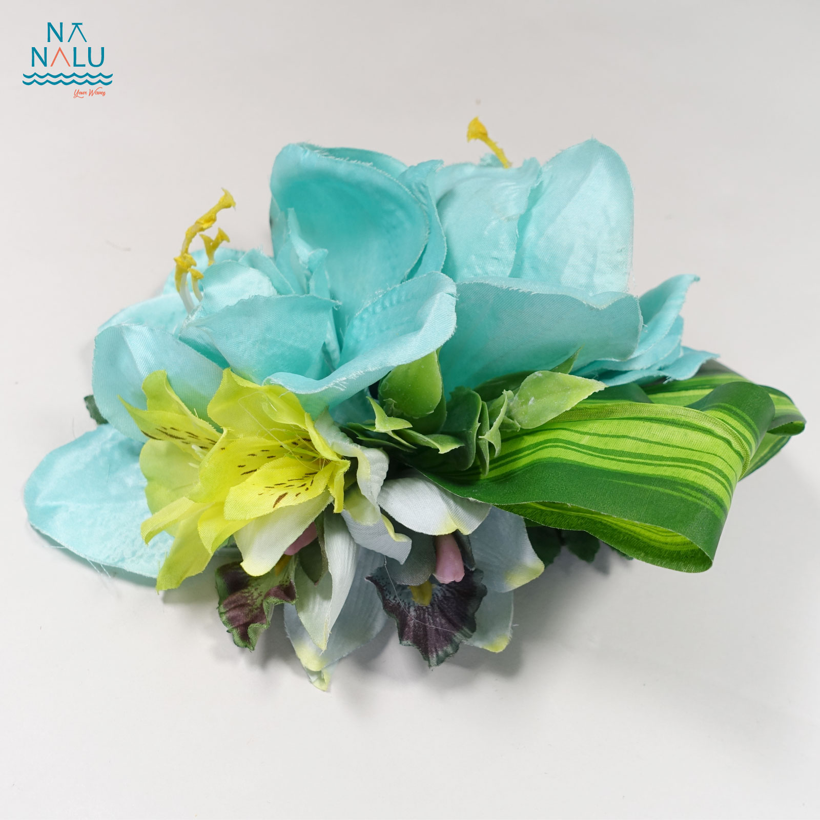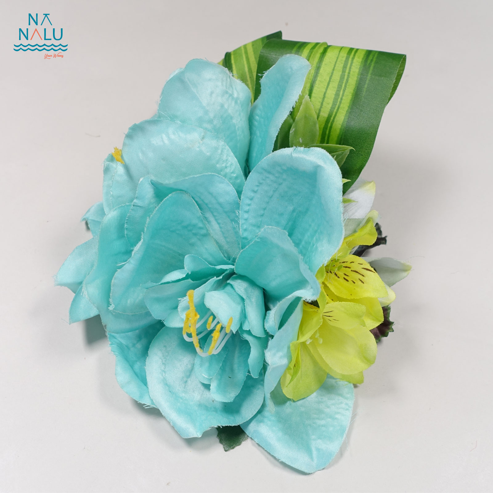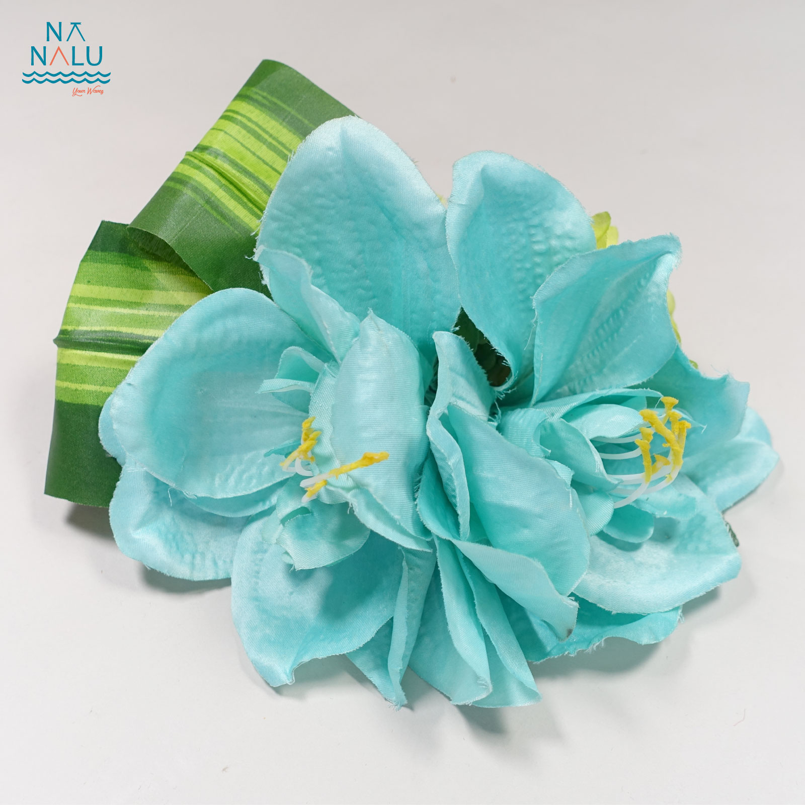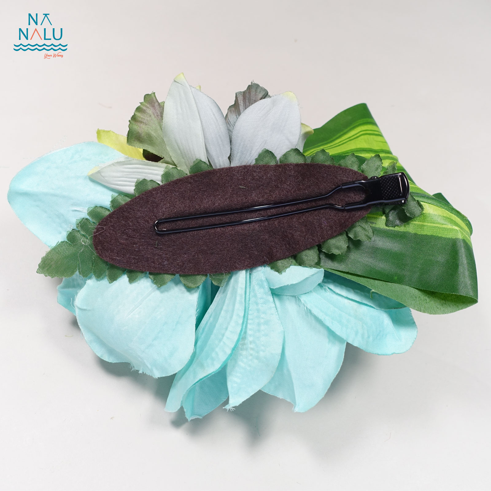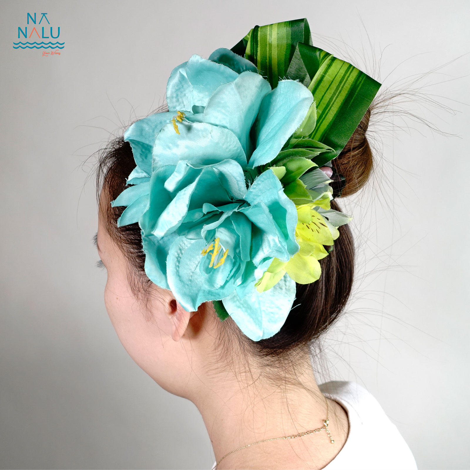 アマリリスにティリーフでリボン風にアレンジした華やかなクリップです。