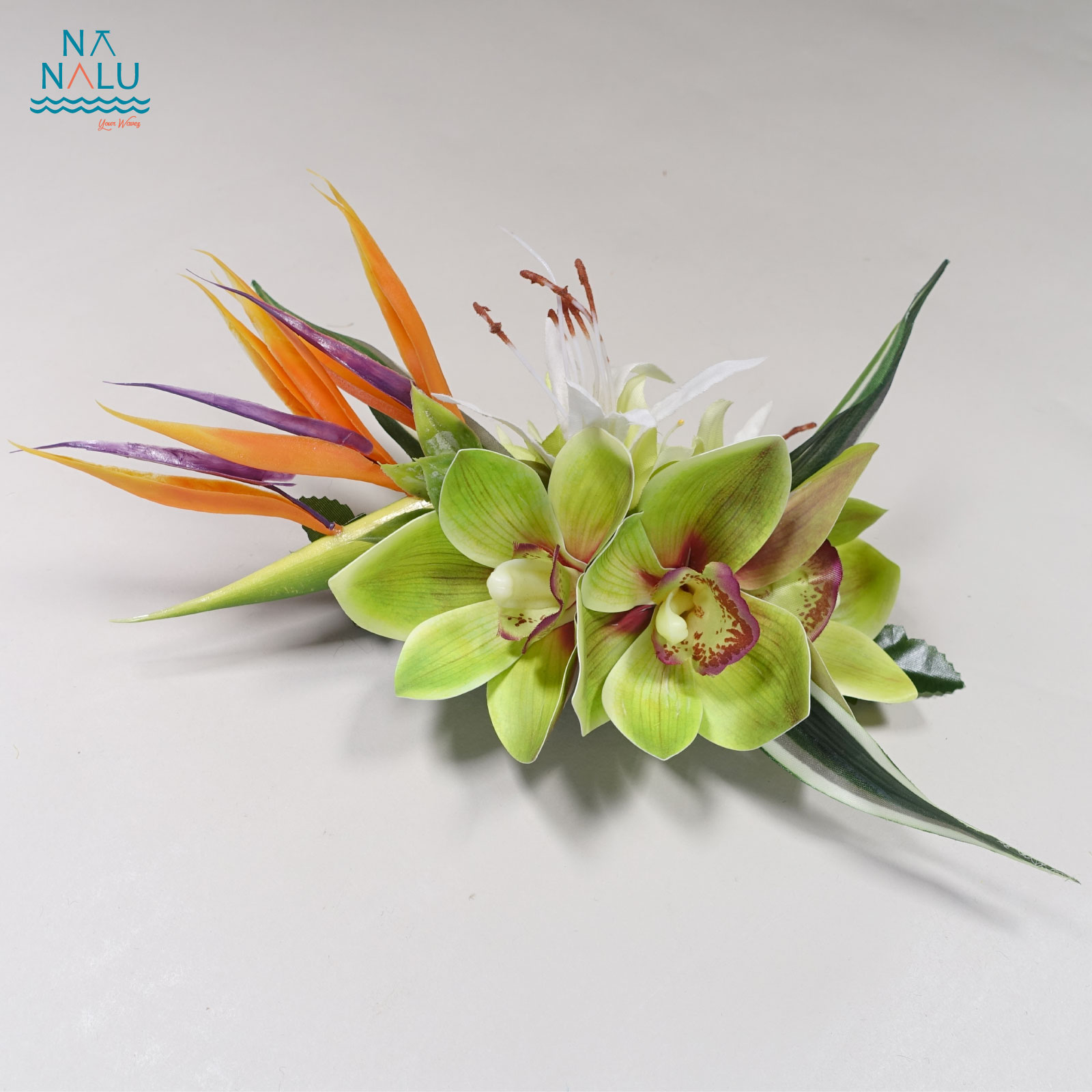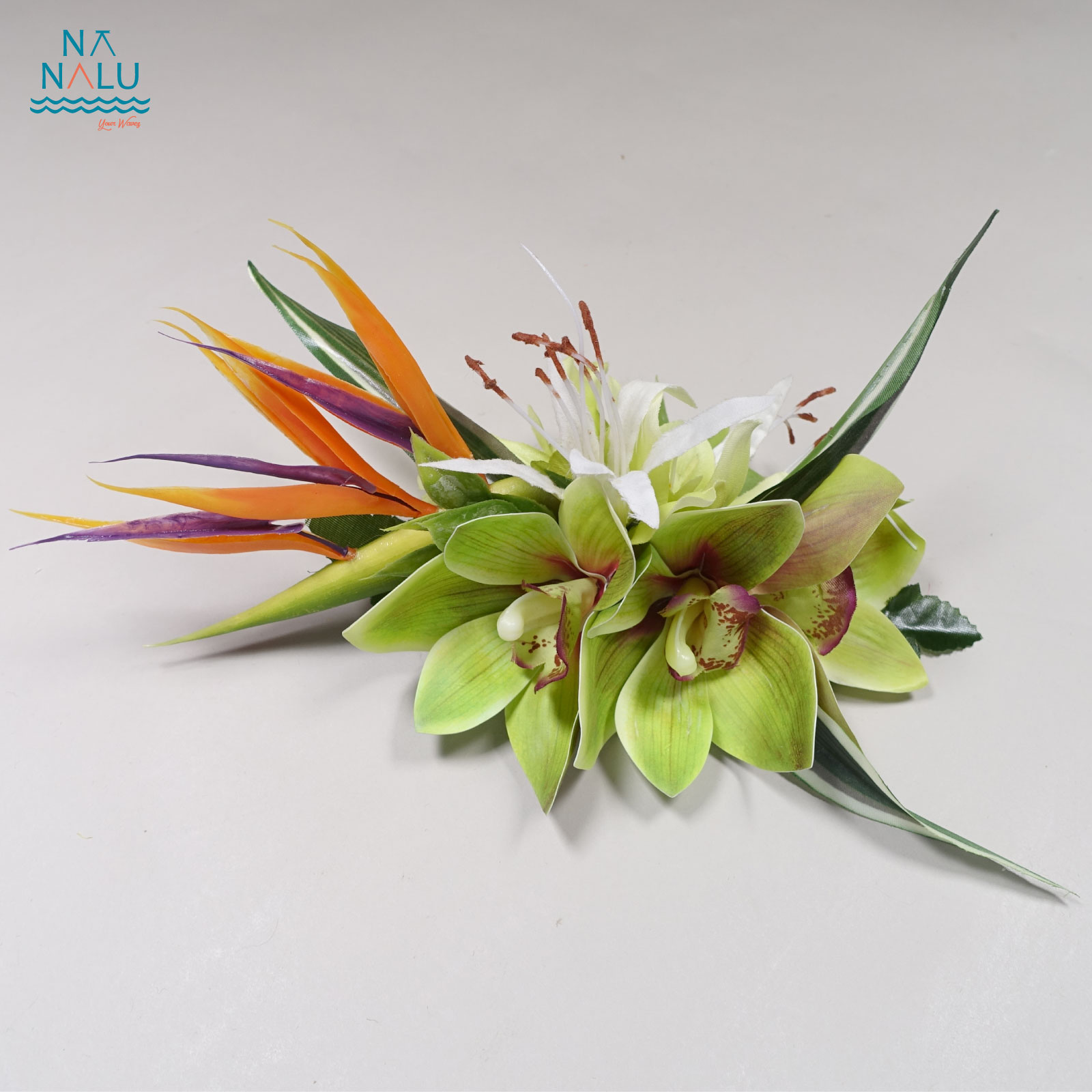 ストレチアクリップ C02028-G ストレチアクリップ ストレチアを中心に、シンビジュームや、リーフ、チューブローズなど複数の花を組み合わせた大人っぽいクリップです。 サイズはW26cm(最大)×D14cm×H約13cm クリップの長さは12cm・日本製です。 ※花材は変更になる場合がございます。 ※これを基本としたオリジナルクリップのオーダーを承っております。お気軽にご相談ください。 在庫有り ¥3,850 ¥3,850(税込) 数量