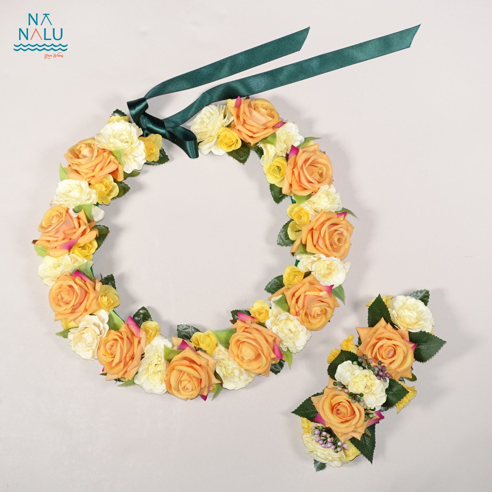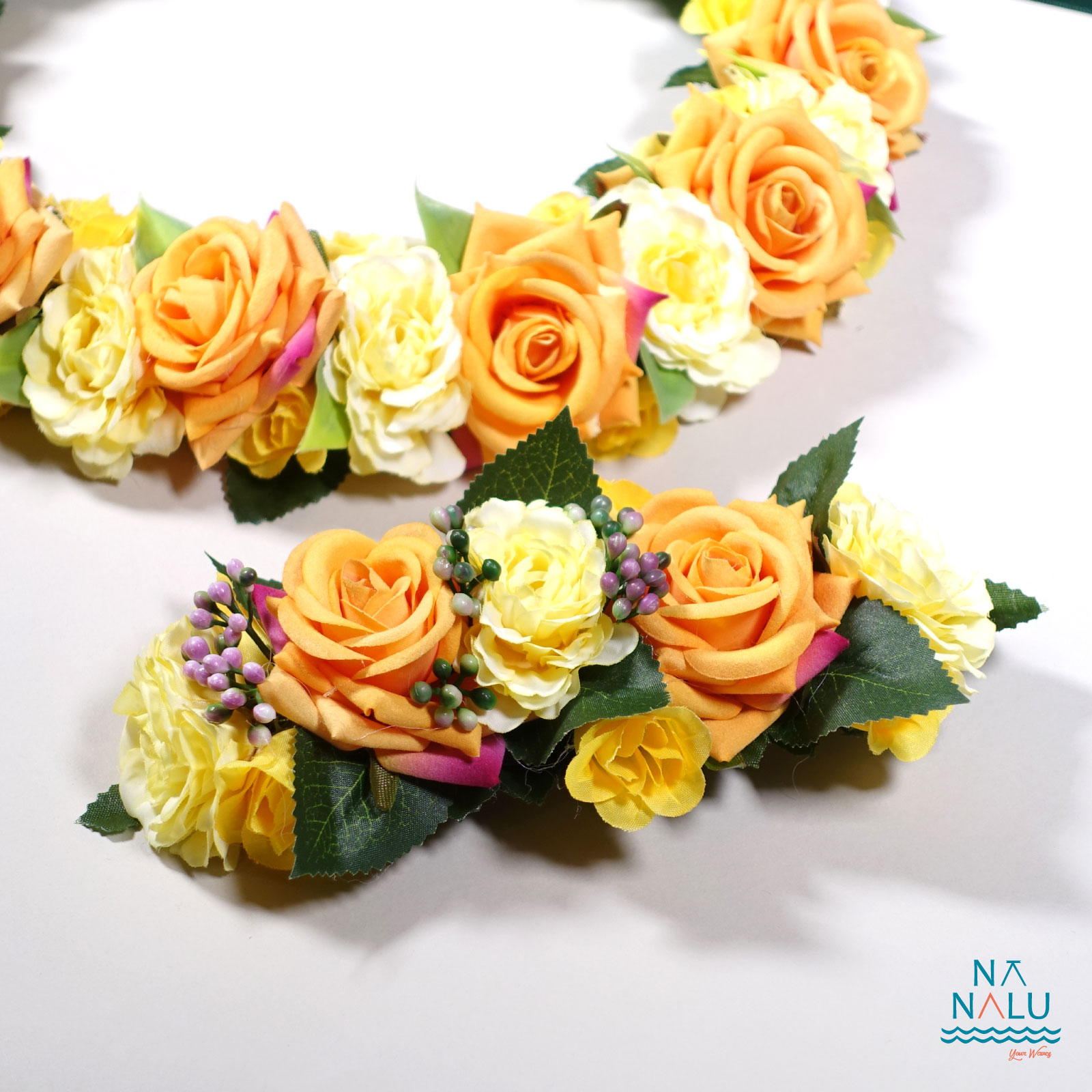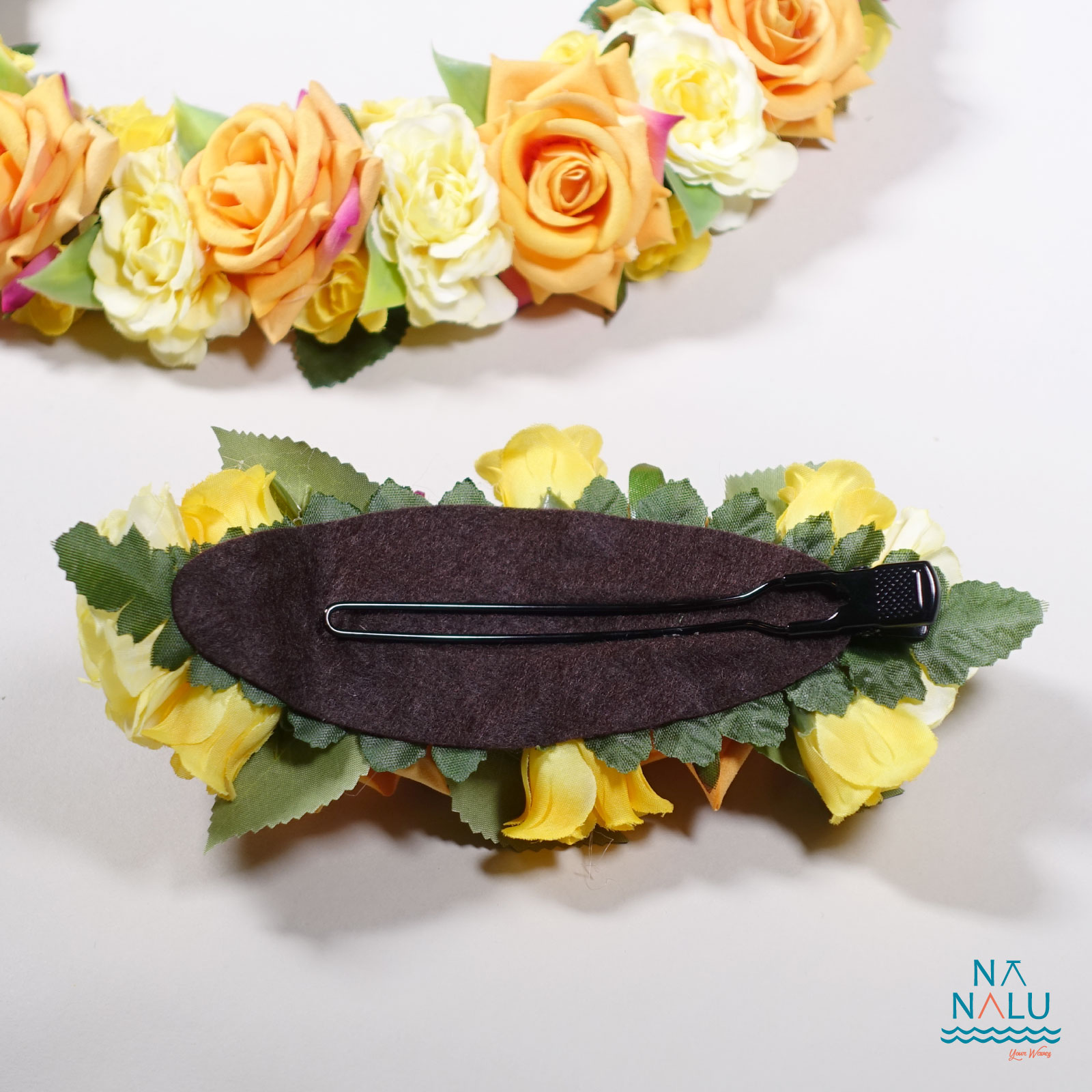 大人気の美しいローズを全周に使用したレイとヘアクリップのセットです。