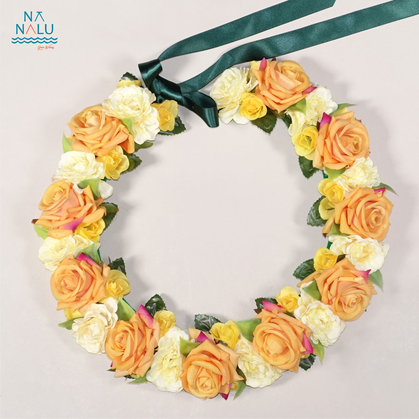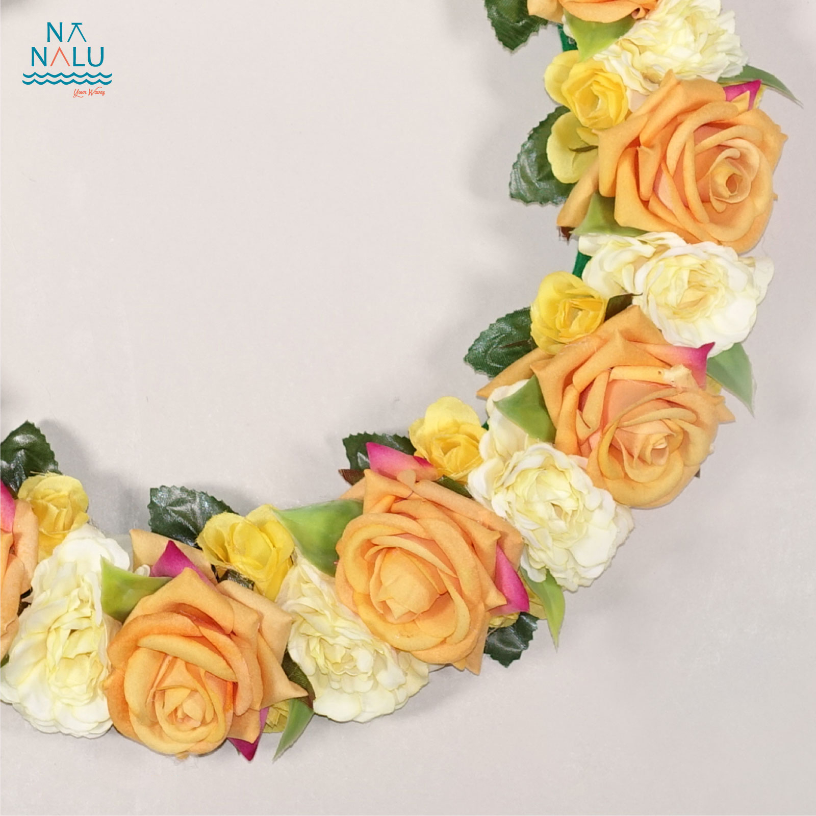 ローズローズレイ L02001-O ローズローズレイ 大人気の美しいローズを全周に使用したレイとヘアクリップのセットです。 クリップは直線的にレイアウトていますので、縦にも横にもお使いいただけます。 おそろいのローズローズクリップ2,800円で、個別にお求めいただけます。(クリップのページをご覧ください。) サイズは レ イ:φ28cm、内径16cm、花の幅約7cm、リボン長さ片側45cm 日本製です。 ※花材は変更になる場合がございます。 ※これを基本としたオリジナルのオーダーを承っております。お気軽にご相談ください。 在庫有り ¥9,350 ¥9,350(税込) 数量