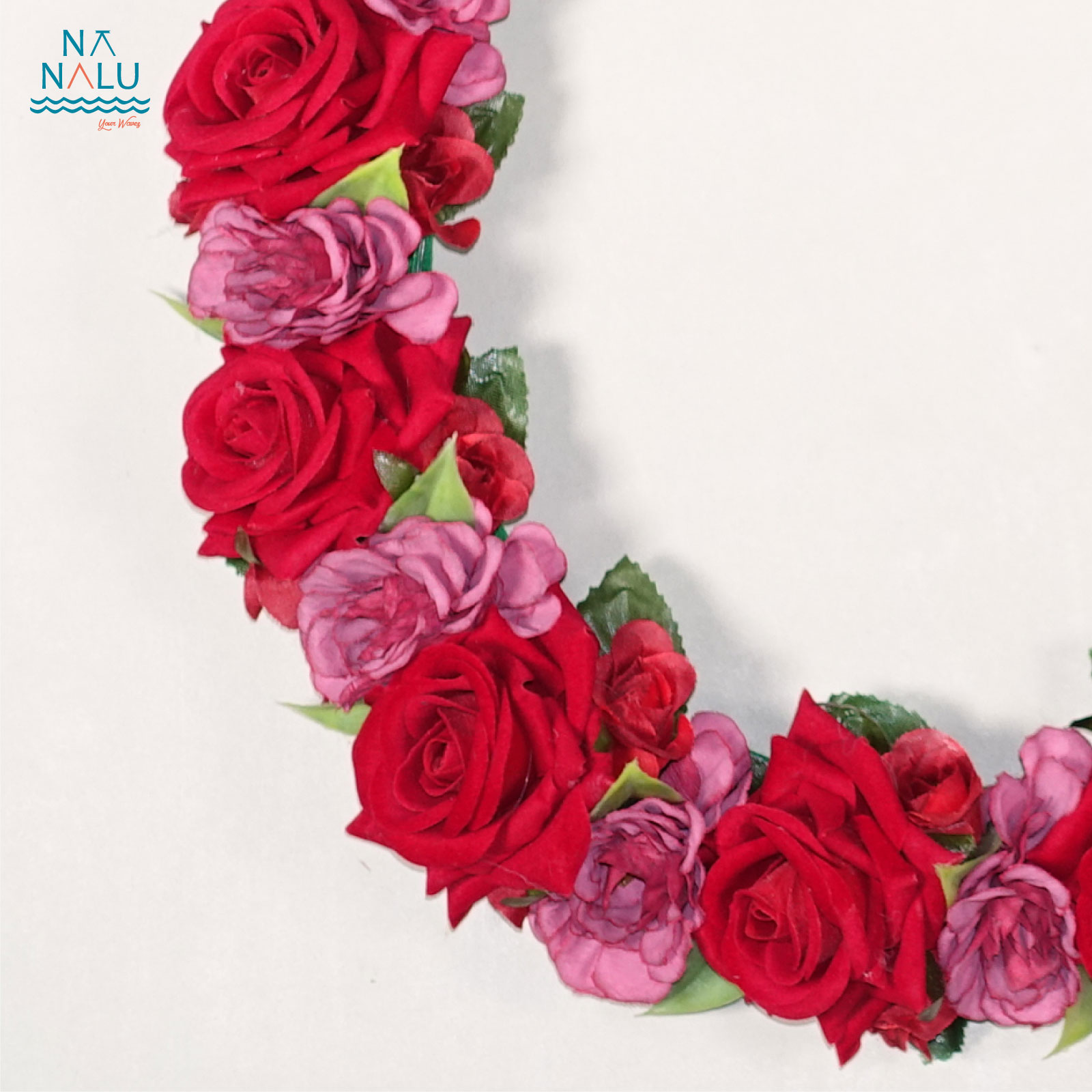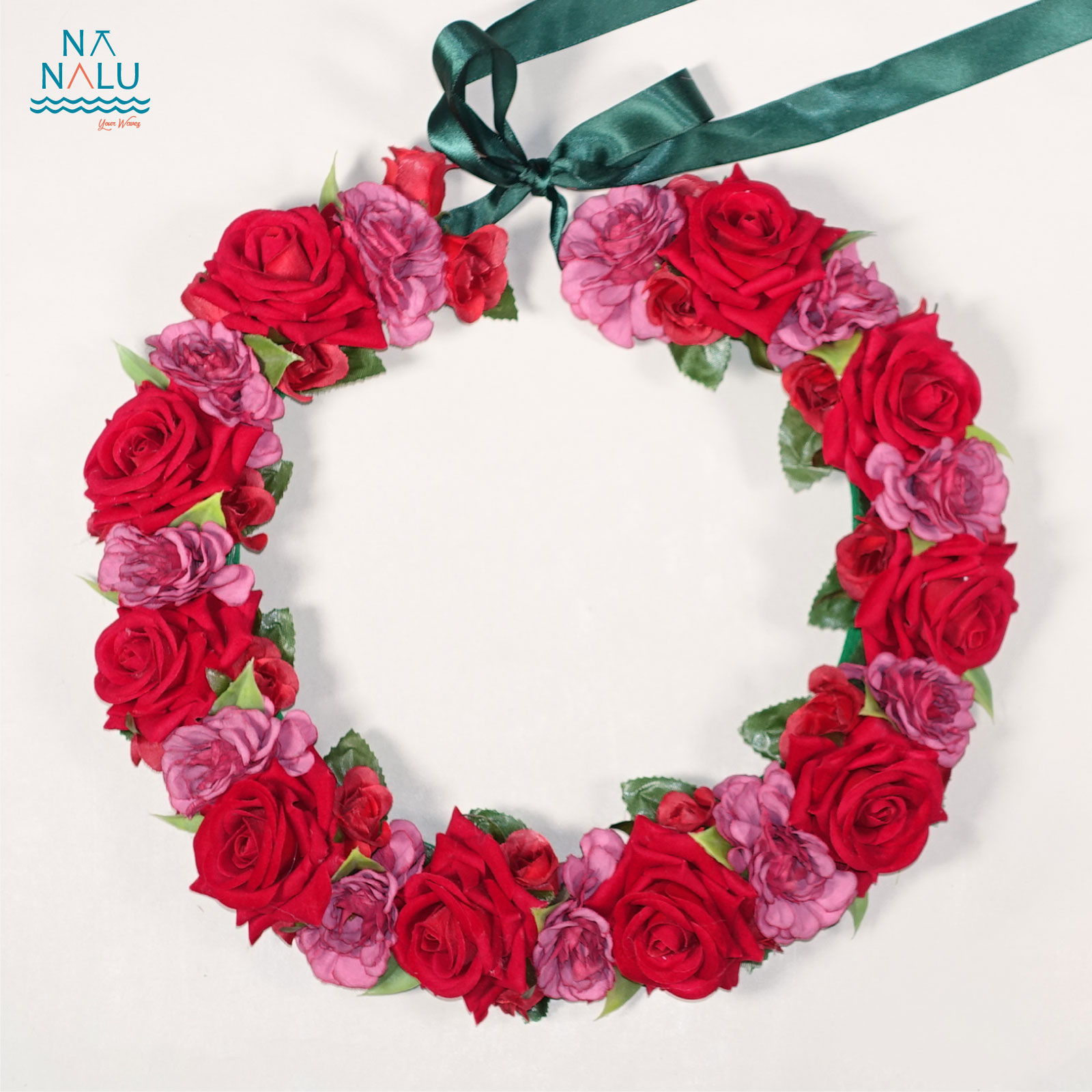 ローズローズレイ L02001-R ローズローズレイ 大人気の美しいローズを全周に使用したレイとヘアクリップのセットです。 クリップは直線的にレイアウトていますので、縦にも横にもお使いいただけます。 おそろいのローズローズクリップ2,800円で、個別にお求めいただけます。(クリップのページをご覧ください。) サイズは レ イ:φ28cm、内径16cm、花の幅約7cm、リボン長さ片側45cm 日本製です。 ※花材は変更になる場合がございます。 ※これを基本としたオリジナルのオーダーを承っております。お気軽にご相談ください。 在庫有り ¥9,350 ¥9,350(税込) 数量