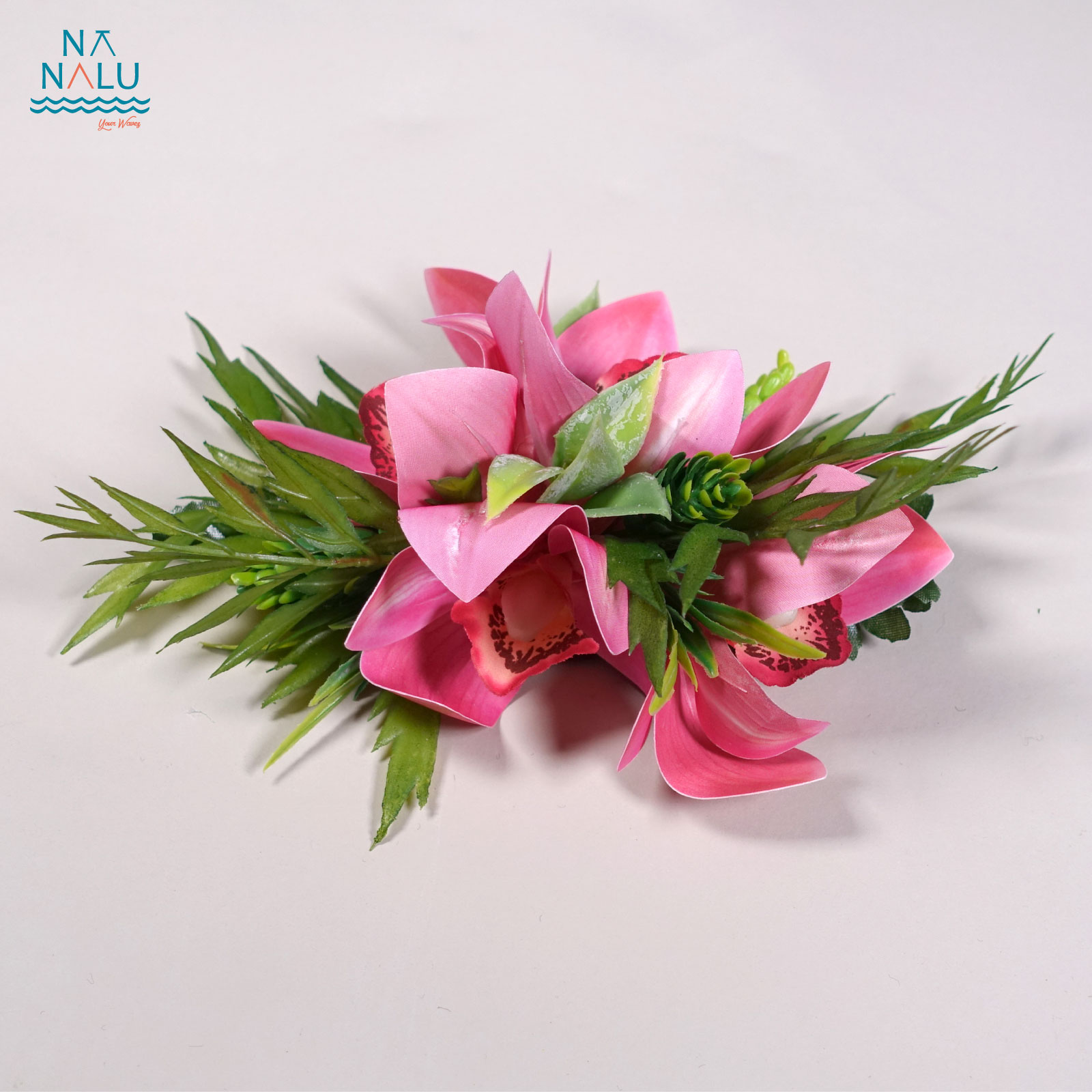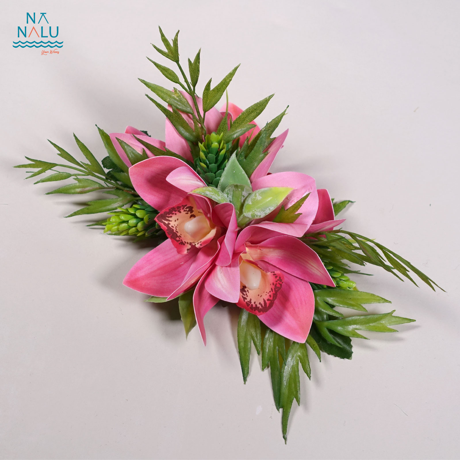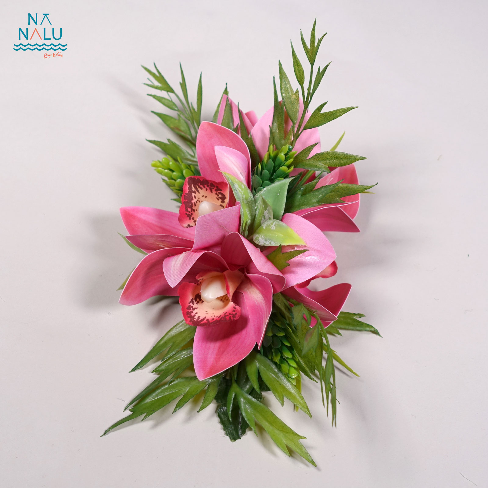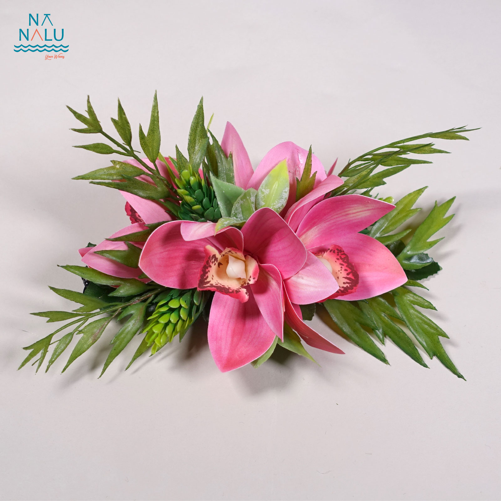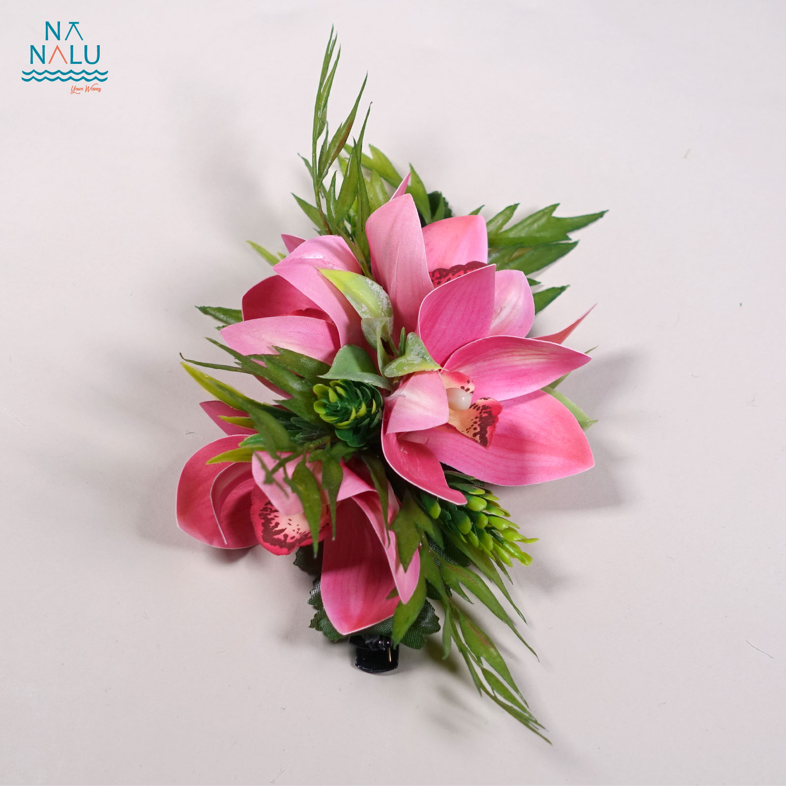 シンビジュームクリップ・ピンク(小) C02017-P シンビジュームクリップ・ピンク(小) 小型のシンビジュームクリップです。少し長めにシダの葉を組み合わせて踊りに合わせて立体的で動きが出るようにしました。 ヘアのサイドに付けると、奥行きが出て、まとめ髪にも華やかさを演出するクリップです。 サイズはW18cm×D13cm×H6.5cm クリップの長さは12cm・日本製です。 ※花材は変更になる場合がございます。 ※これを基本としたオリジナルクリップのオーダーを承っております。お気軽にご相談ください。 在庫有り ¥3,300 ¥3,300(税込) 数量