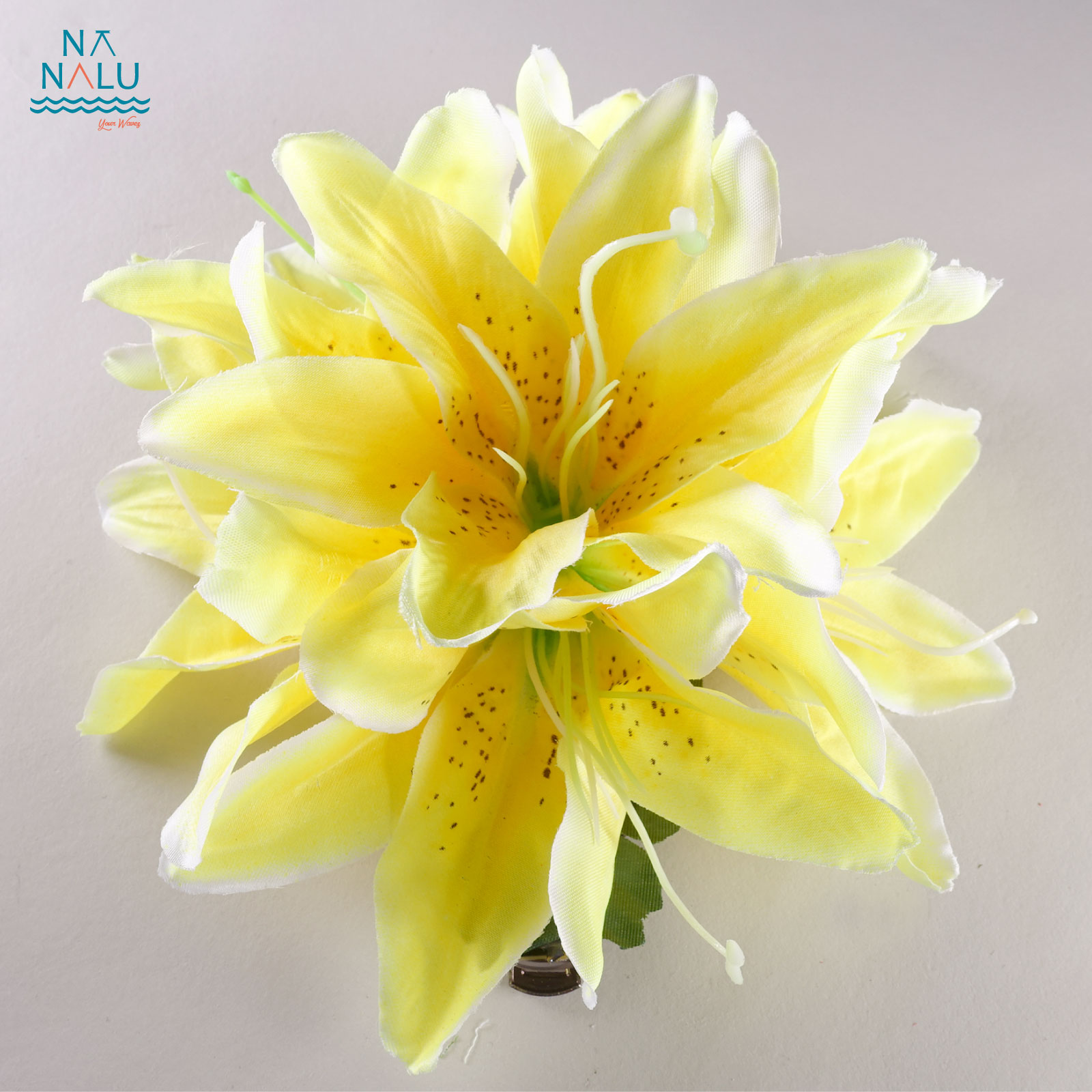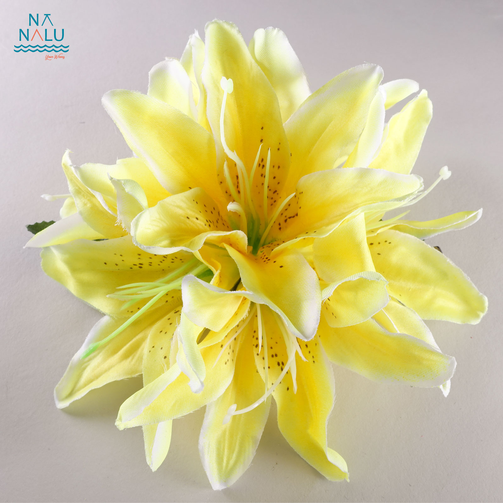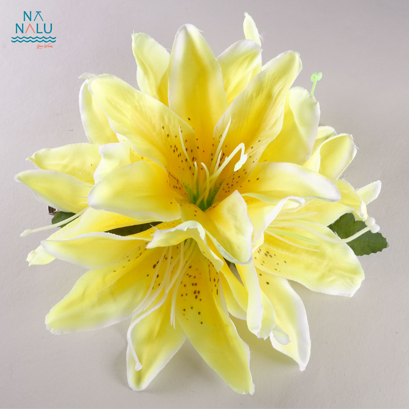 6輪リリークリップ・イエロー C02021-Y 6輪リリークリップ・イエロー リリー(百合)6輪を使ったシンプルなヘアクリップ(髪飾り)です。どこから見てもリリーだけ。カラーも6色展開しています。 髪をアップにしても、そのままでも付ける位置によって様々な楽しみ方ができる便利なヘアクリップ。 和装にもお使いいただけます。 サイズはW18×D18cm×H10.5cm クリップの長さは12cm・日本製です。 ※花材は変更になる場合がございます。 ※これを基本としたオリジナルクリップのオーダーを承っております。お気軽にご相談ください。 在庫有り ¥3,080 ¥3,080(税込) 数量
