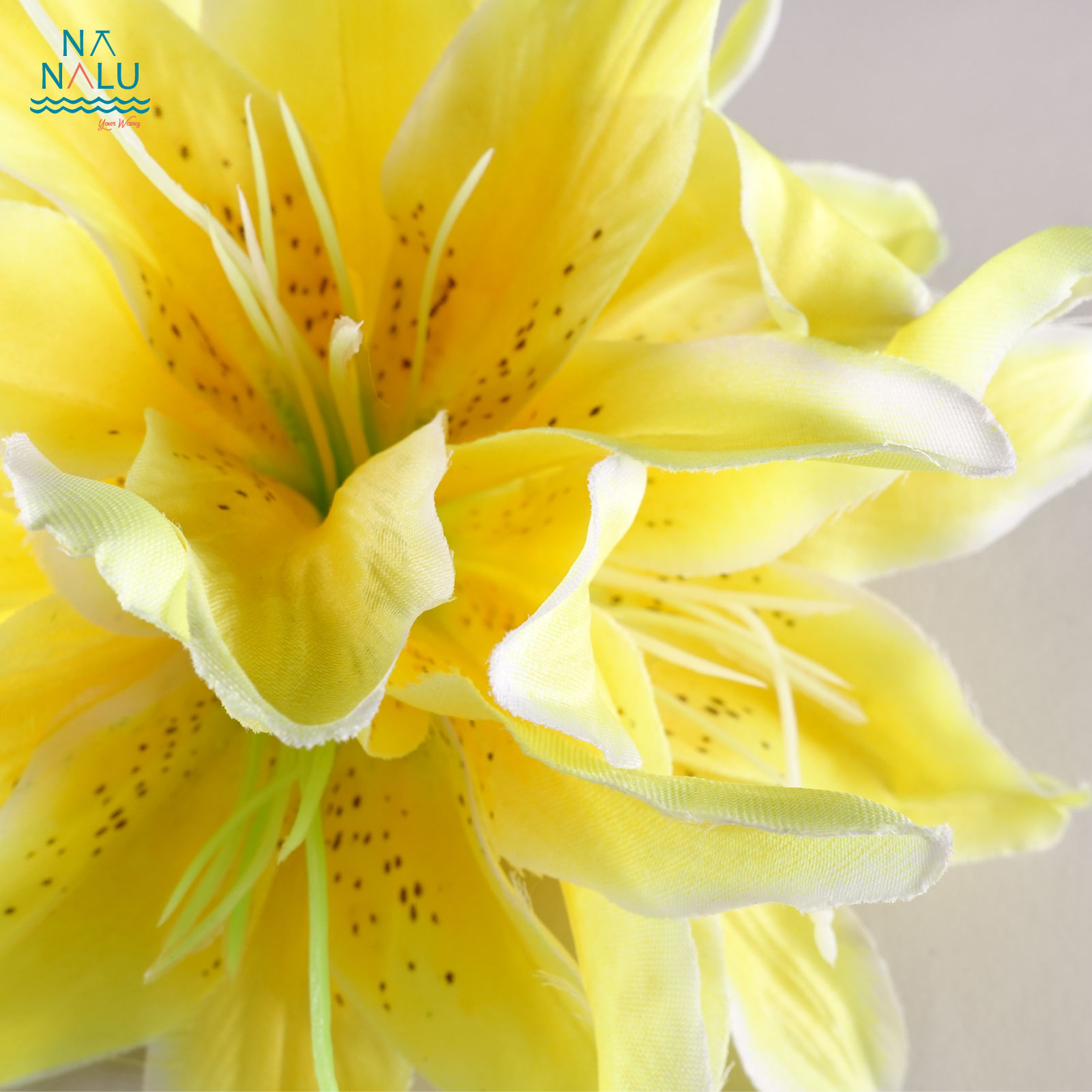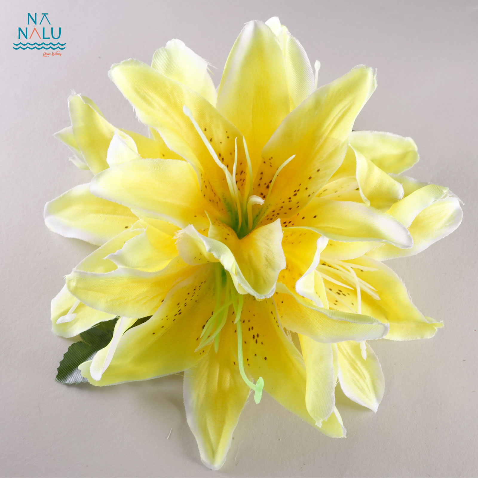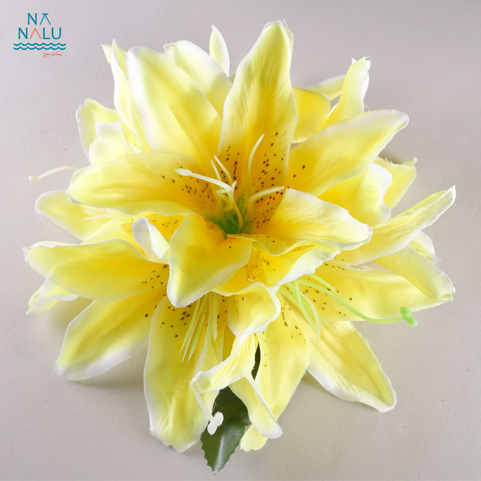 6輪リリークリップ・イエロー C02021-Y 6輪リリークリップ・イエロー リリー(百合)6輪を使ったシンプルなヘアクリップ(髪飾り)です。どこから見てもリリーだけ。カラーも6色展開しています。 髪をアップにしても、そのままでも付ける位置によって様々な楽しみ方ができる便利なヘアクリップ。 和装にもお使いいただけます。 サイズはW18×D18cm×H10.5cm クリップの長さは12cm・日本製です。 ※花材は変更になる場合がございます。 ※これを基本としたオリジナルクリップのオーダーを承っております。お気軽にご相談ください。 在庫有り ¥3,080 ¥3,080(税込) 数量