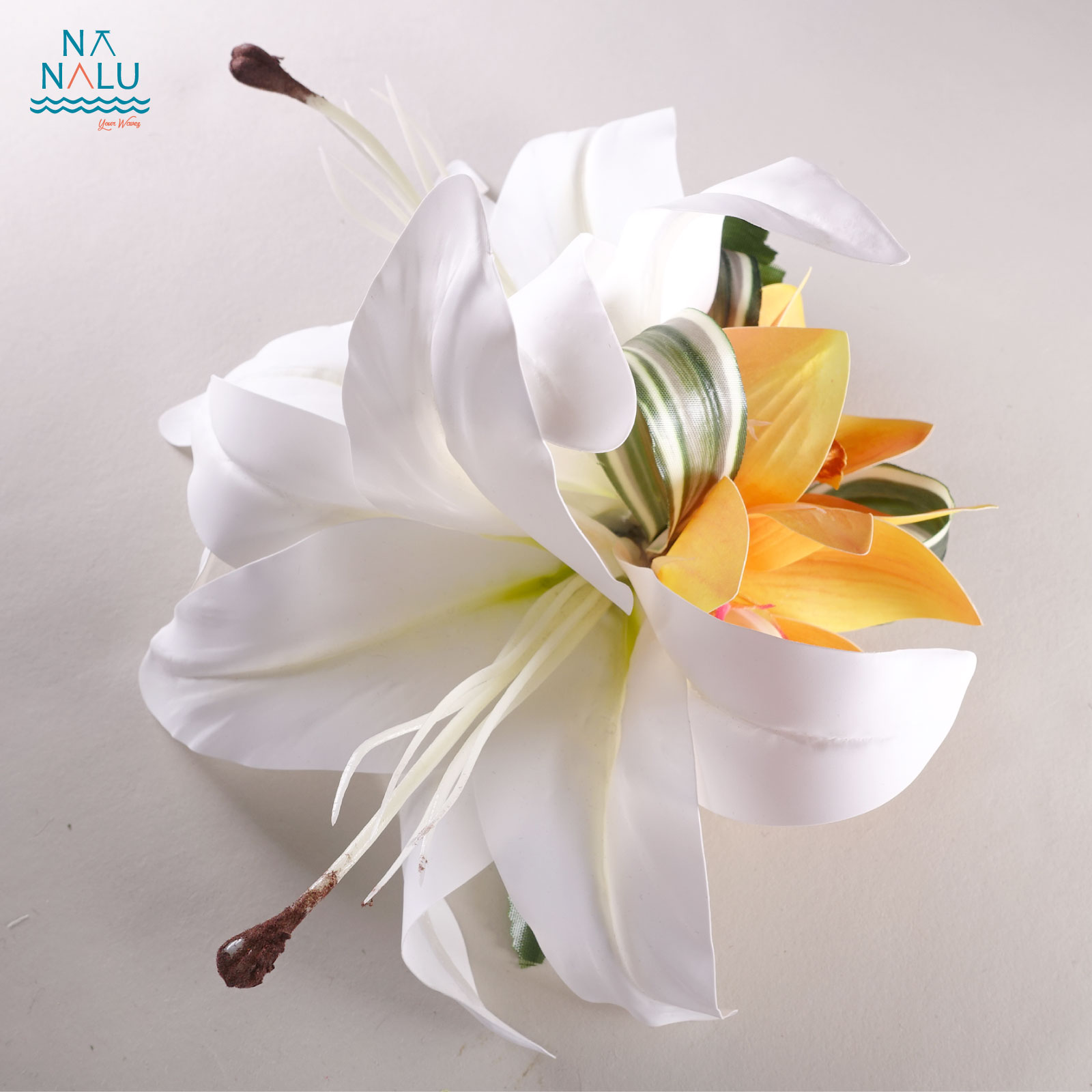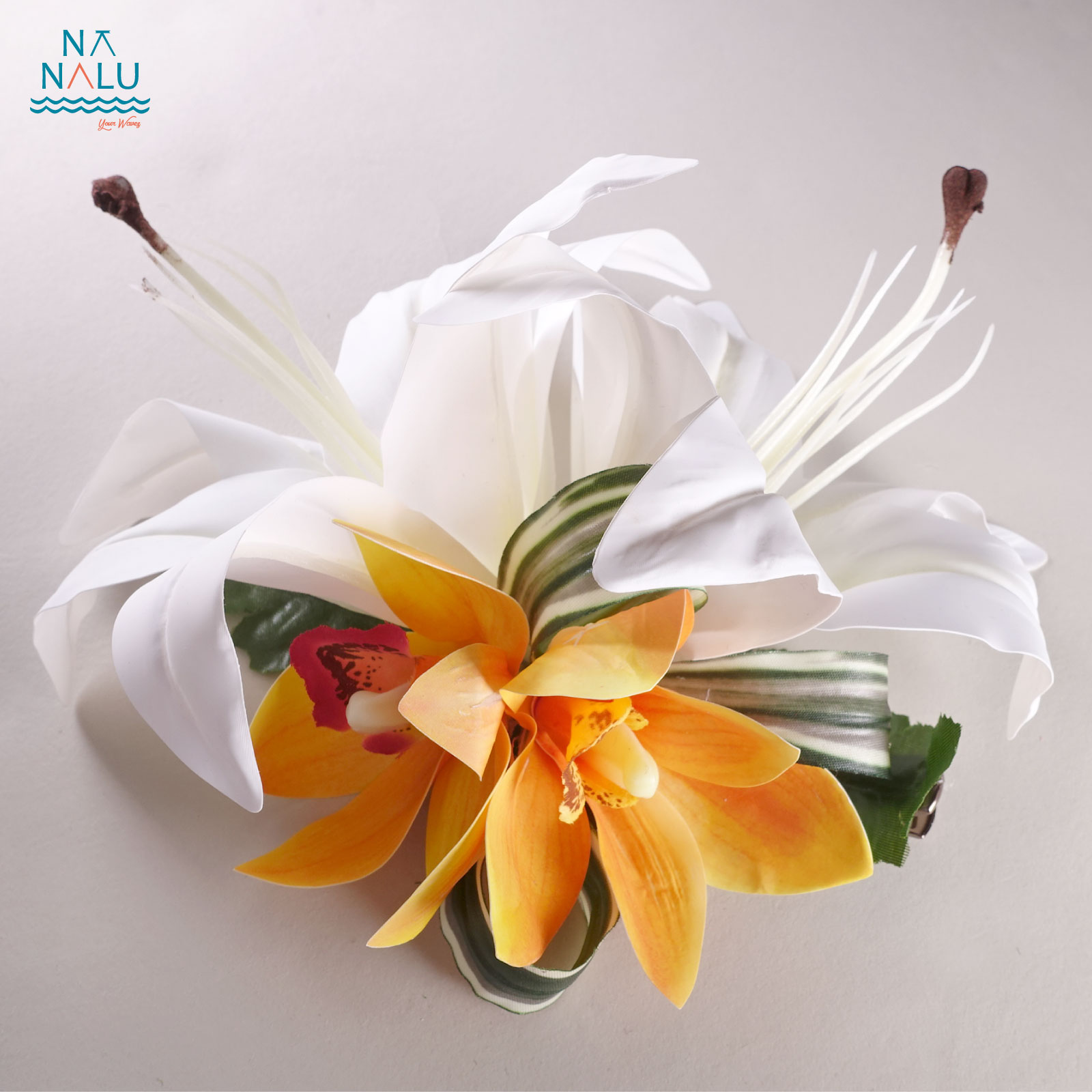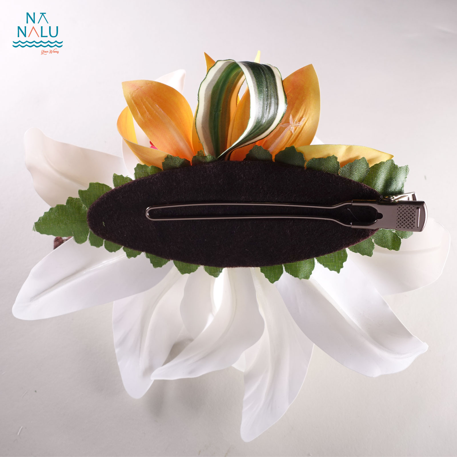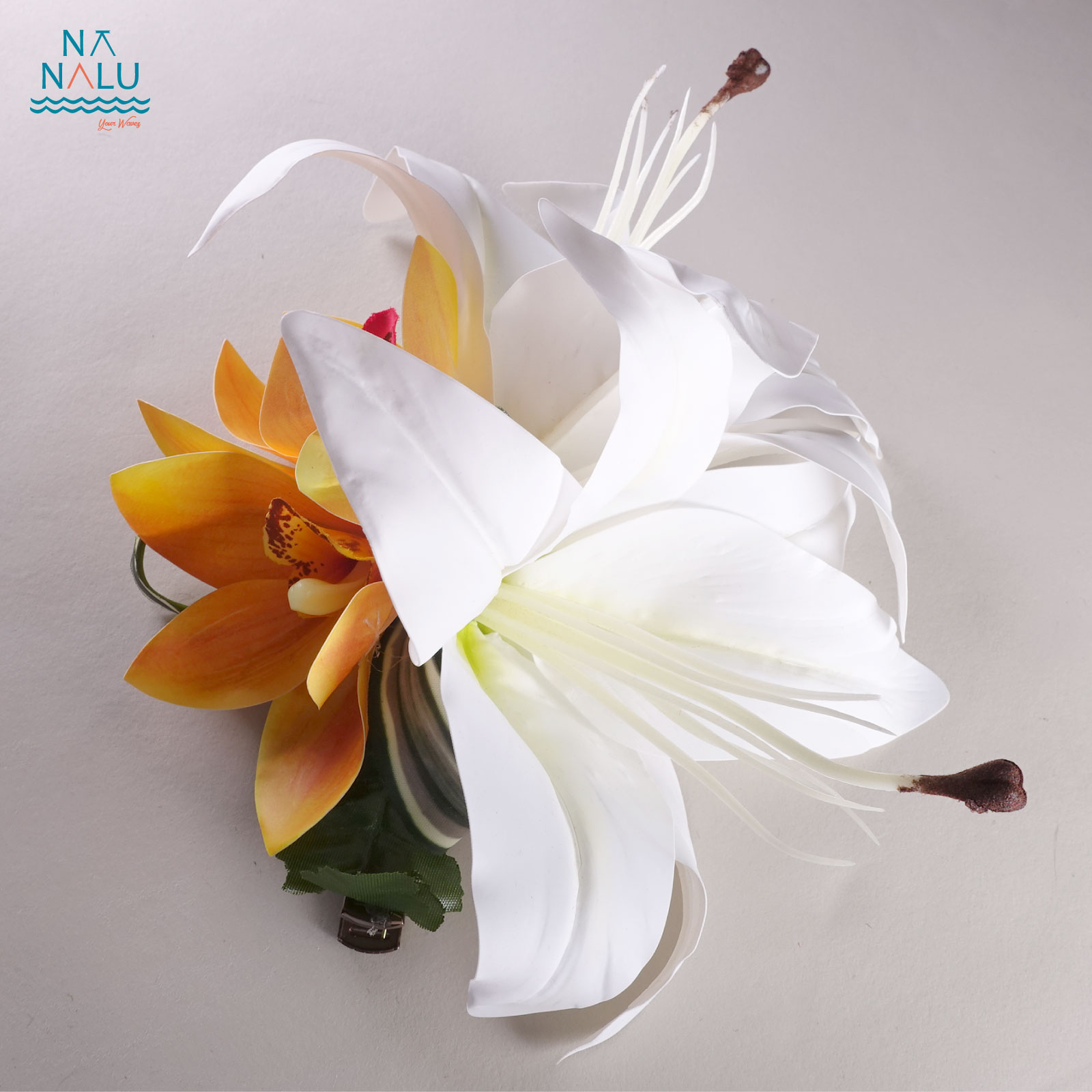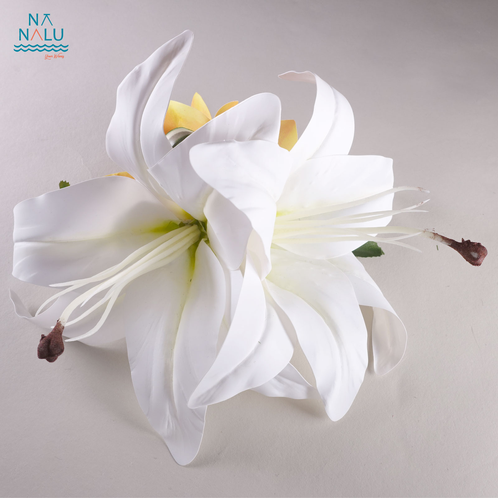 カサブランカ(百合)のしっかりとした素材でできたヘアクリップ(髪飾り)です。