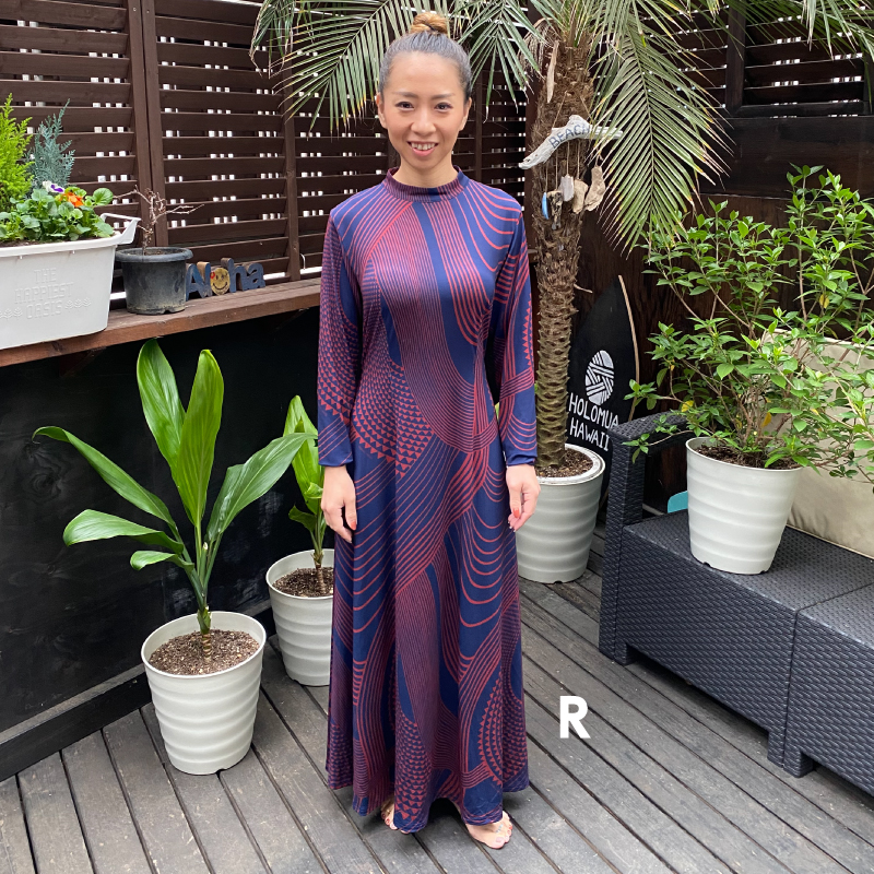長袖+スタンドカラーのシンプルで様々な場面で着用できるどなたでも綺麗に着こなせるドレスです。